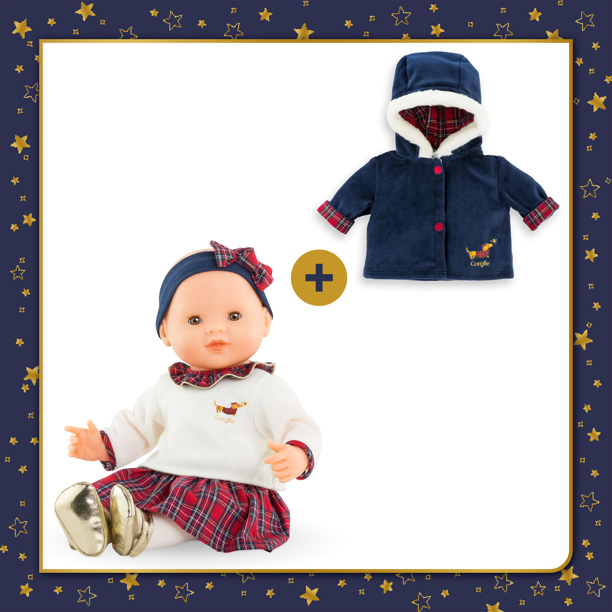 Économisez 16,99 € en achetant cet ensemble Mon Grand Poupon Suzanne et Manteau Corolle en Fêtes.