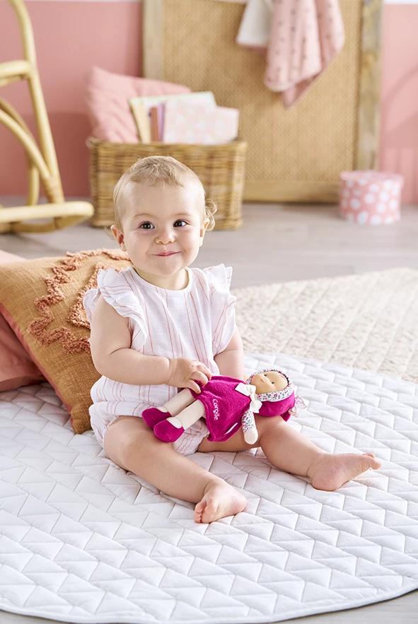 Avec sa large collection de doudous, la Maison Corolle offre aux tout-petits un complice de jeu très doux et réconfortant qui s’emmène partout. Tidoudou, Miss, Babipouce ou encore Babidoux accompagnent les premiers instants de vie de bébé et participent à l’éveil des sens. Chacun possède une étiquette pour indiquer le prénom de l’enfant ou un numéro de téléphone en cas de perte. Ils affichent tous une jolie frimousse en vinyle réaliste et rassurante, dont s’exalte une délicate et rassurante senteur de vanille, si typique de la marque. Grâce à leur corps souple, leur bonnet de lutin et au petit carré de tissu relié à la main, chaque mini doudou enveloppe l’enfant dans un cocon de douceur. Conçu pour être facilement attrapé, manipulé, mais aussi suçoté et mâchouillé, le mini doudou deviendra vite un complice dont votre bébé ne pourra plus se passer !