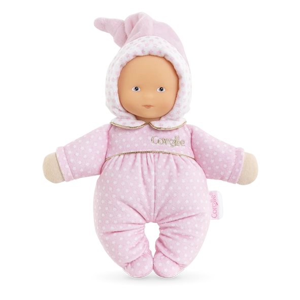 C’estl’âge idéal pour offrir un doudou, premier compagnon de berceau et de jeu. Chez Corolle, les doudous se déclinent à l’envi dans de belles palettes de couleurs. Tous sont pensés pour favoriser le bien-être des tout-petits, accompagner le développement de leur curiosité et répondre en toute sécurité à leurs besoins fondamentaux que sontla succion et le mâchouillage. Les visages réalistes en vinyle des doudous Corolle rassurent et réconfortent, tout comme la délicate senteur de vanille qui les accompagne.