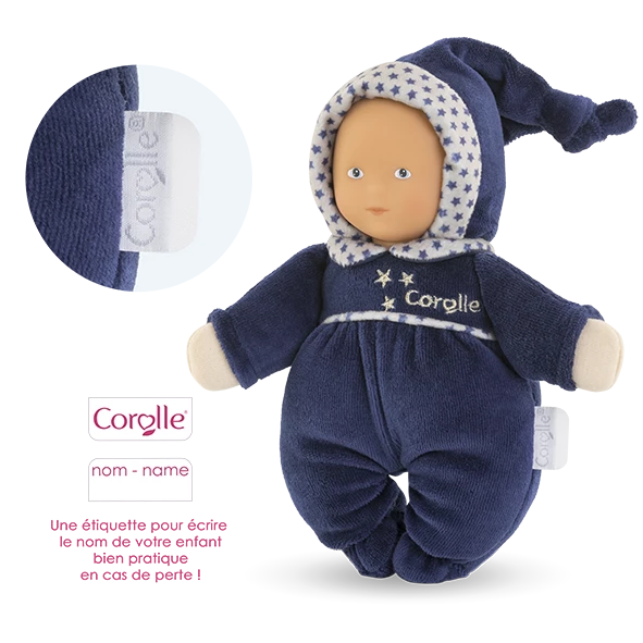 Et parce qu'un doudou Corolle est aussi fait pour voyager, tous les doudous Corolle ont une étiquette pour écrire le prénom de l'enfant et le numéro de téléphone des parents