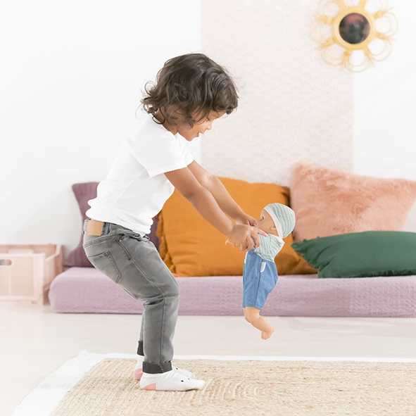 À l’approche de ses 18 mois, l’enfant développe un grand intérêt pour imiter les gestes et les actions de son entourage. Votre enfant commence alors à faire semblant et à reproduire de manière différée les gestes et les actions réalisés par son entourage. Ces jeux sont grandement bénéfiques à son développement. Ils permettent de développer son autonomie, sa débrouillardise et sa confiance en lui, de renforcer ses habiletés sociales et d’améliorer sa capacité à contrôler ses gestes et ses émotions. Le poupon et la poupée deviennent alors des jouets incontournables.