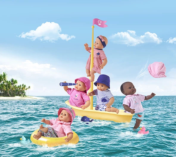 Dans le bain, mais également dans la piscine, à la plage ou au bord d’un lac, le poupon pour le bain Corolle accompagne votre enfant dans toutes ses aventures. Ce petit poupon de 30 cm, ou de 20 cm, possède un corps souple idéal pour initier au jeu d’imitation dès l’âge de 18 mois. Le poupon Bébé Bain dispose d’une attache dans le dos afin de le suspendre pour le faire sécher facilement après la baignade. Bébé Bain Alizée, Bébé Bain Marin, Bébé Bain Calypso, Mini Bébé Bain Rose ou encore Mini Bain Bleu n’attendent que vous.