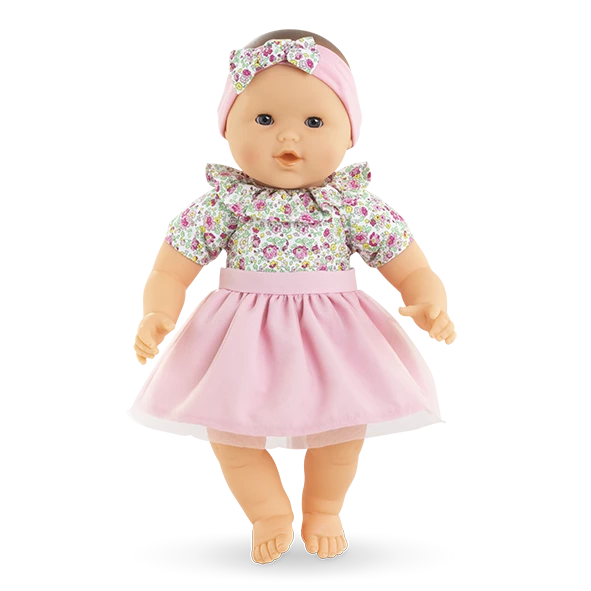 Habillé du joli tissu fleuri de sa toile de corps, Mon Adorable Grand Poupon se distingue par sa collerette assortie, directement cousue autour de son cou. Il possède aussi un tutu en tulle tout doux qui est amovible pour varier les tenues ! Le tout est complété par un bandeau assorti qui ajoute une touche finale à ce look plein de tendresse.